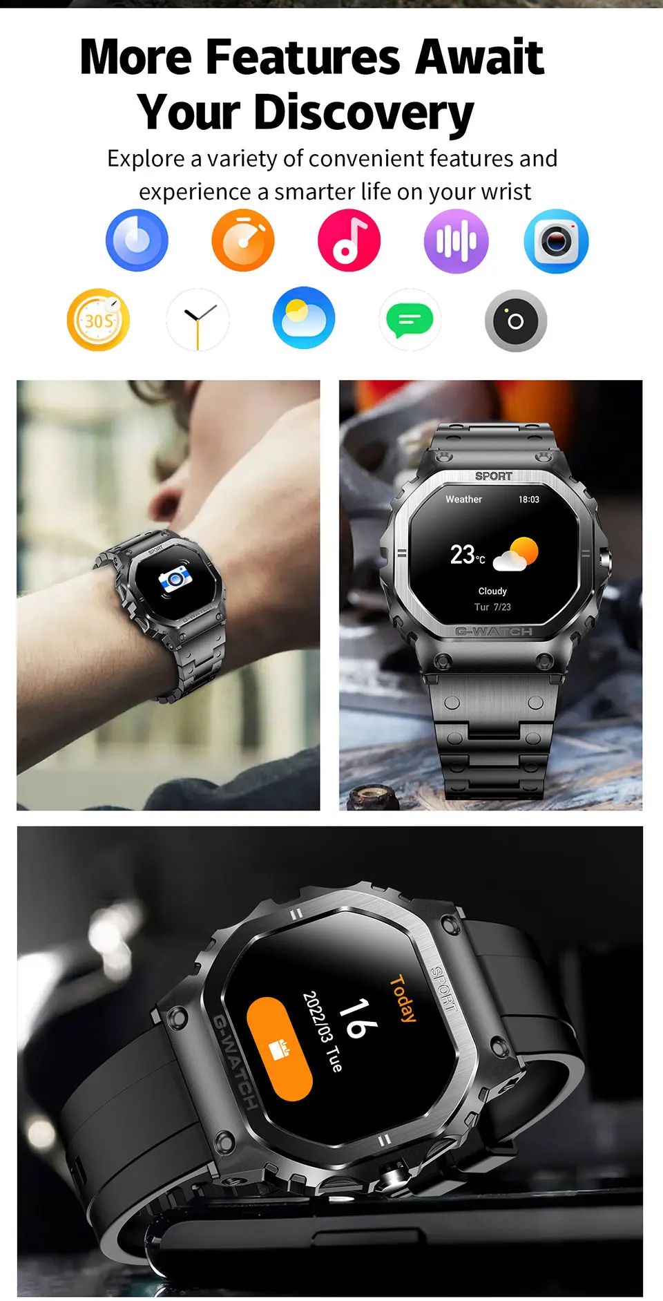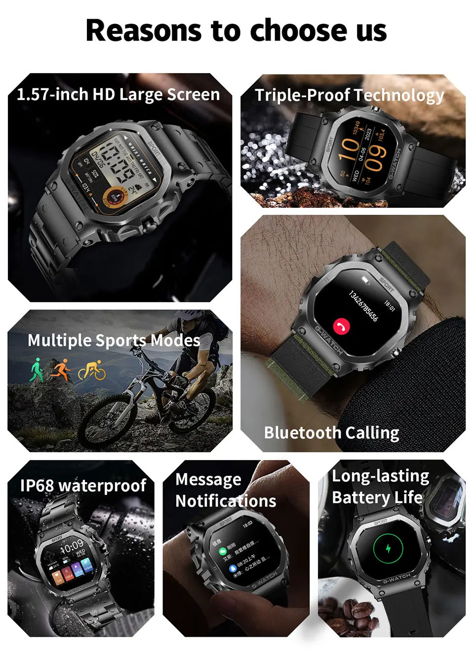 Screen Size: 1.57 TFT DisplaynBluetooth Version: 5.2nWaterproof Grade: Professional IP68nCompatibility: Android OS, iOSnHealth Monitoring: Blood Pressure, Blood Oxygen, Heart Rate, SleepnSports Modes: 8 Tracked Sportsnnn|Smart Watch 2024|Smart Watch For Men 2024|nn**Advanced Health Monitoring and Fitness Tracking**nThe 2024 Smart Watch is a comprehensive health and fitness companion designed to keep you informed and motivated. With its advanced health monitoring features, including blood pressure, blood oxygen, and heart rate tracking, you can keep a close eye on your vital signs. The watch’s sleep monitoring function provides valuable insights into your sleep quality, helping you make adjustments to your lifestyle for better rest. Additionally, the watch’s stress monitoring feature assists in managing stress levels, promoting a more balanced and healthy lifestyle.nn**Seamless Connectivity and User Experience**nThe 2024 Smart Watch is not just a timepiece; it’s a gateway to a connected world. With Bluetooth 5.2 technology, the watch ensures stable and fast data transmission, making it easy to receive calls and notifications from your smartphone. The watch’s compatibility with both Android and iOS systems means that it can be easily paired with a wide range of devices. The watch’s user interface is intuitive, with a customizable watch face and the ability to download additional watch faces from the FitCloudPro app, ensuring a personalized experience.nn**Durable Design and Versatile Functionality**nThe smart watch boasts a robust IP68 waterproof rating, making it suitable for various activities, from swimming to outdoor adventures. Its professional waterproof design ensures that your watch can withstand the rigors of daily wear and tear. The watch’s sporty silhouette, with a detachable silica gel band, offers both style and comfort. The watch’s 1.57-inch TFT display provides a clear view of your notifications and health data, while the watch’s lightweight construction ensures it remains comfortable on your wrist throughout the day. Whether you’re tracking your fitness goals or staying connected, the 2024 Smart Watch is the perfect accessory for an active and health-conscious lifestyle.
